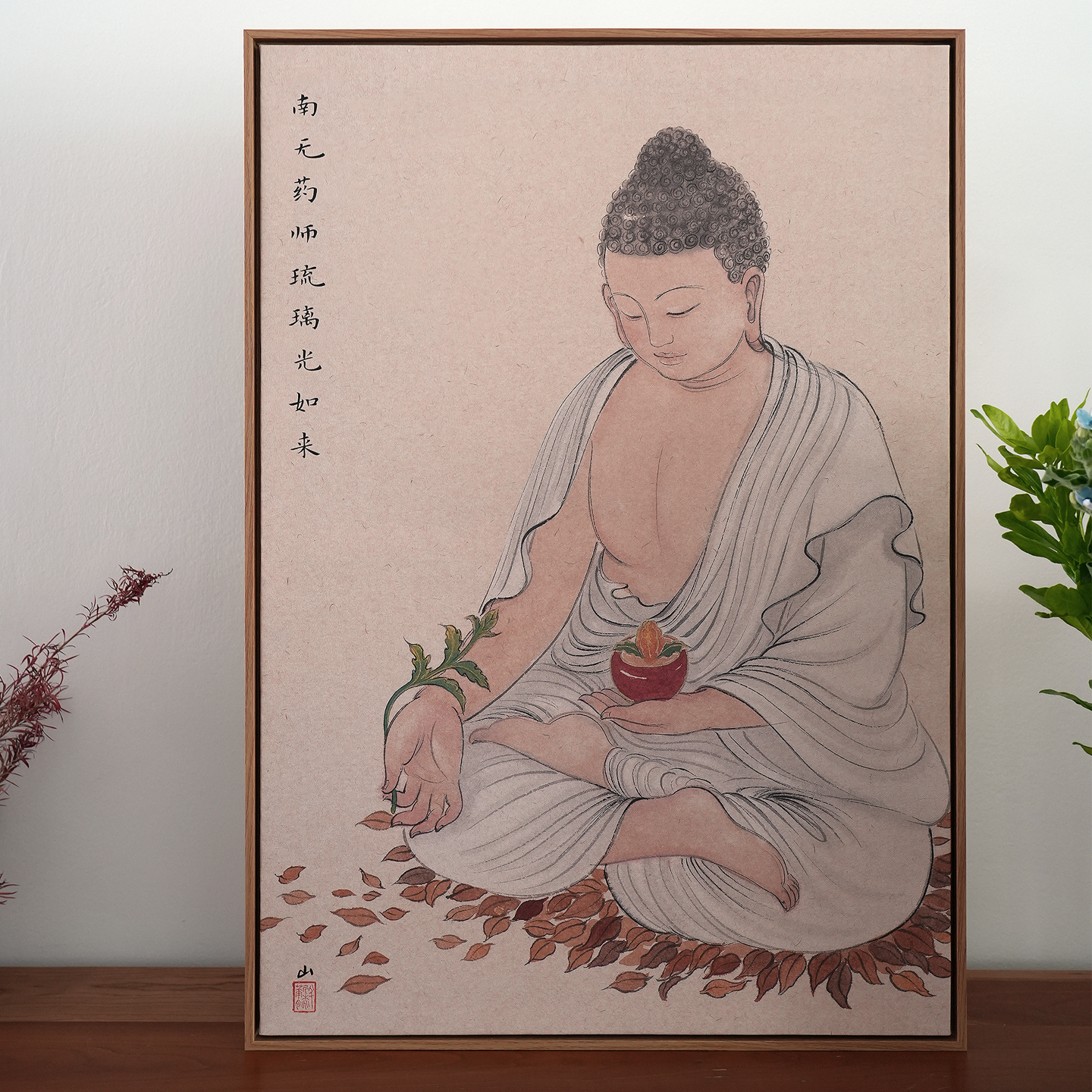 一二山药师佛皇小小原创L框装饰画新中式客厅书房沙发背景墙挂画