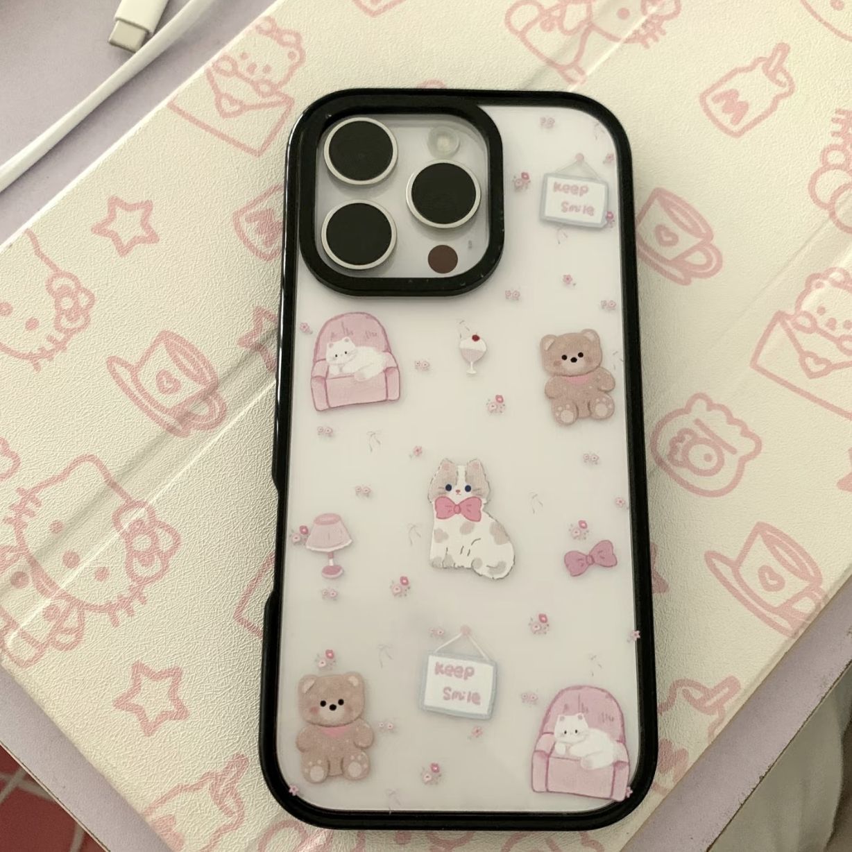 沙发猫咪小熊适用苹果16promax亚克力13 14黑边12透明XR软壳15 16