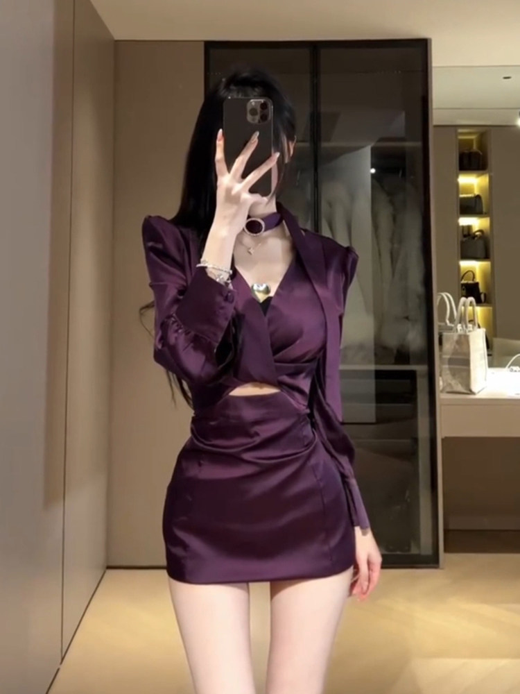 夜场纯欲性感深V领连衣裙女秋冬显瘦遮肚子辣妹气质显身材包臀裙