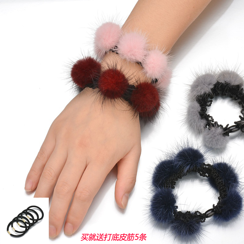 韩国头饰品百搭真貂毛发圈扎头发皮筋毛毛球发绳 女皮草头绳发饰
