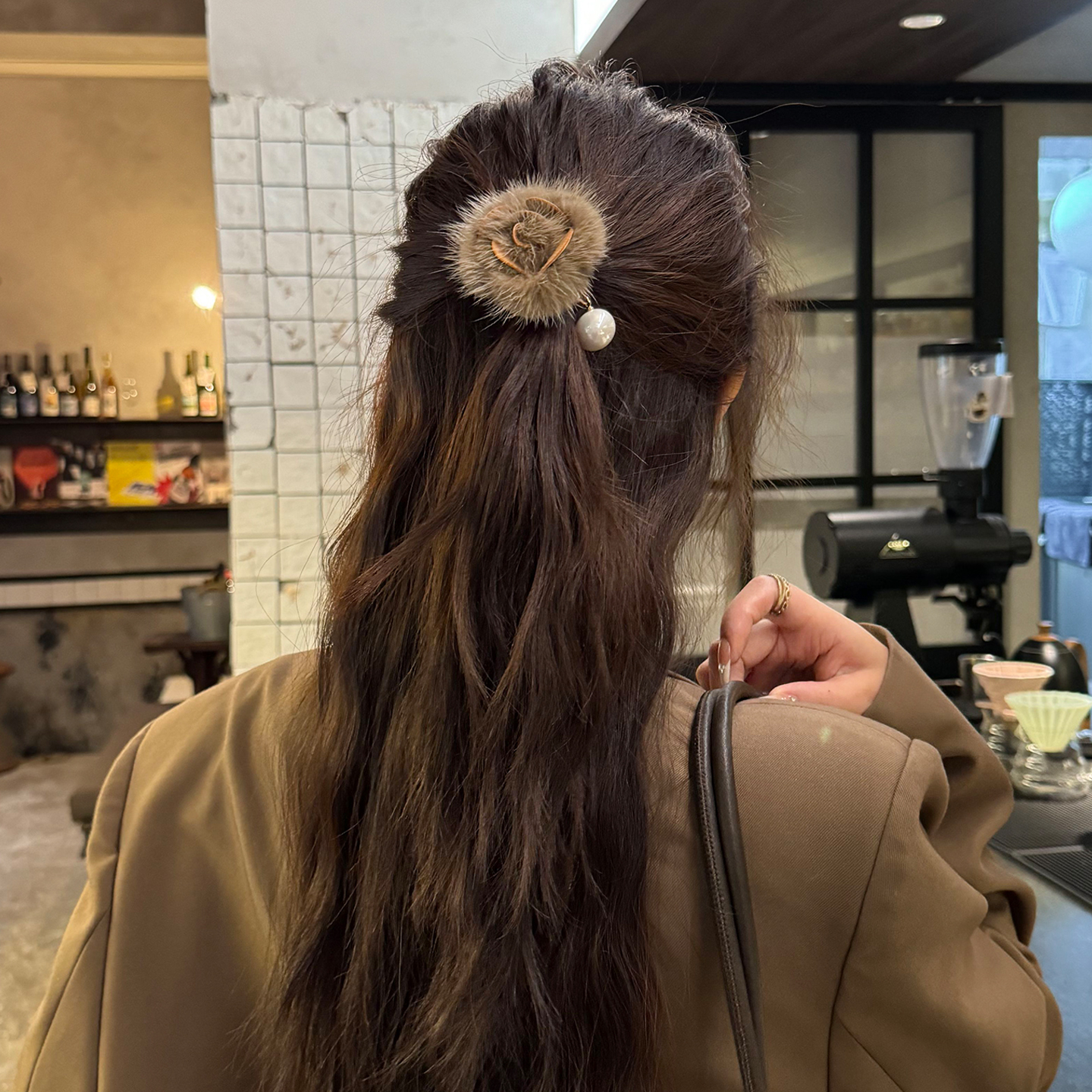 韩国正品钢印2025新款高级感水貂毛发圈女发梳秋冬搭配头发插梳