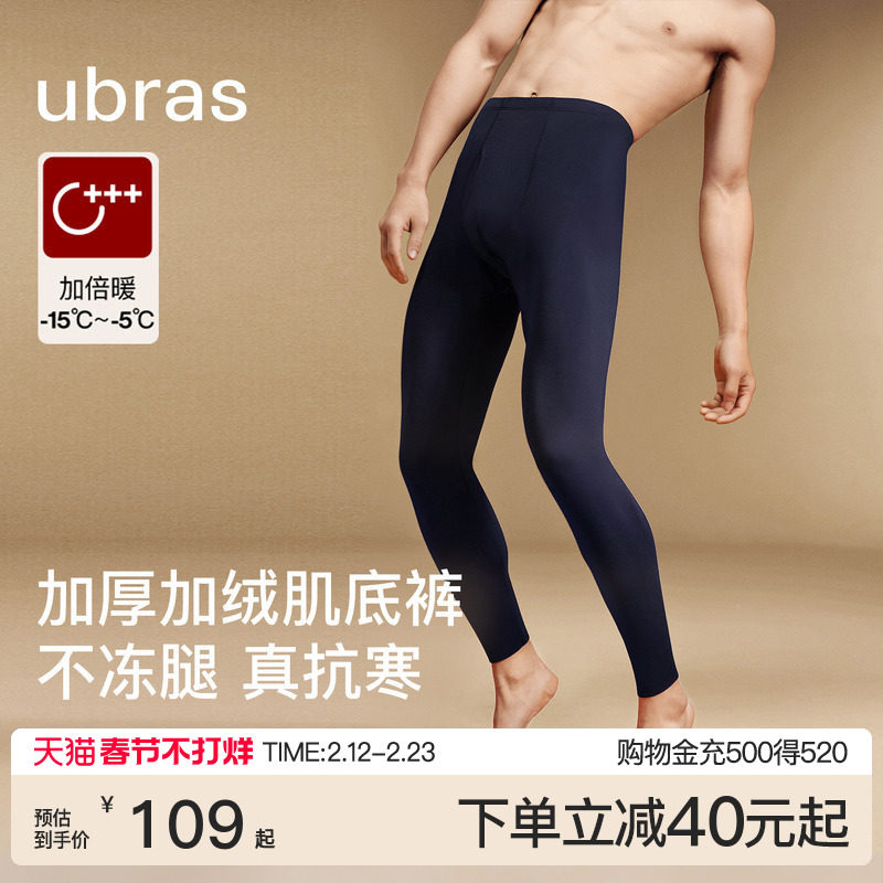 ubras保暖裤男士含羊毛秋裤男线裤羽绒化加绒加厚打底裤男青少年