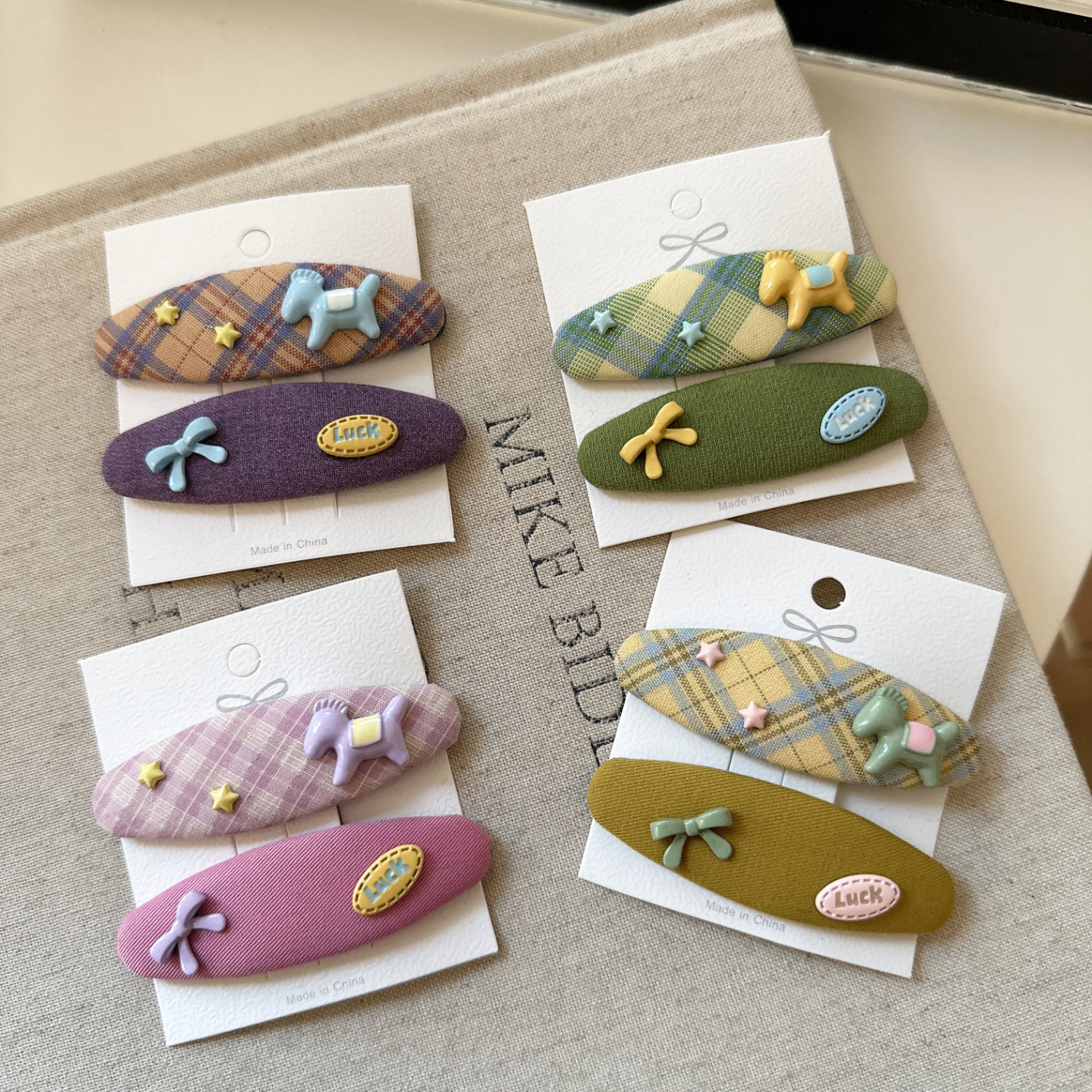 韩系新款可爱格子小马发夹甜美蝴蝶结布艺边夹碎发发卡bb夹刘海夹