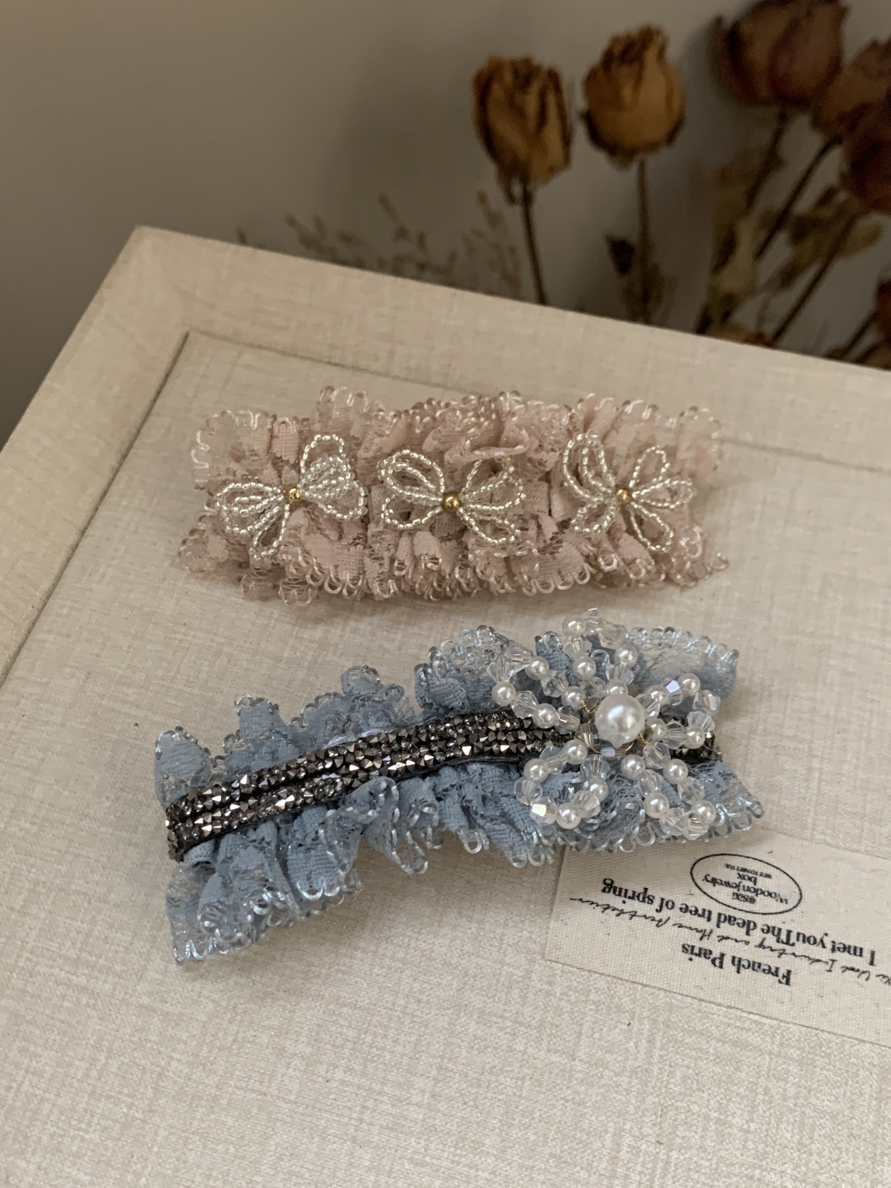 2025新款韩国Baket代购发饰超仙蕾丝花朵侧边夹刘海夹鸭嘴夹发夹