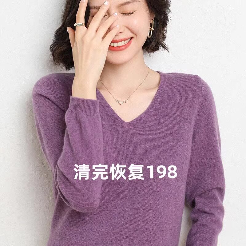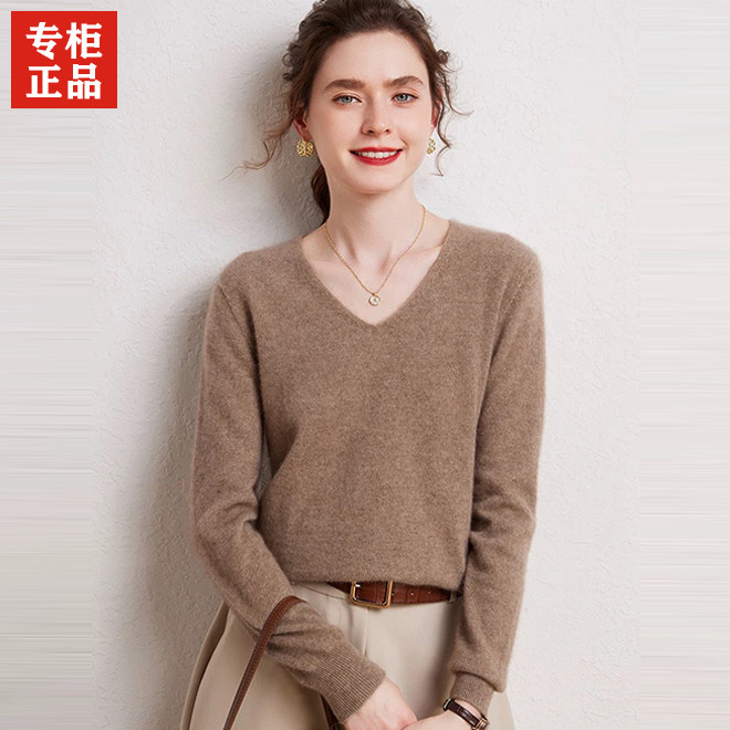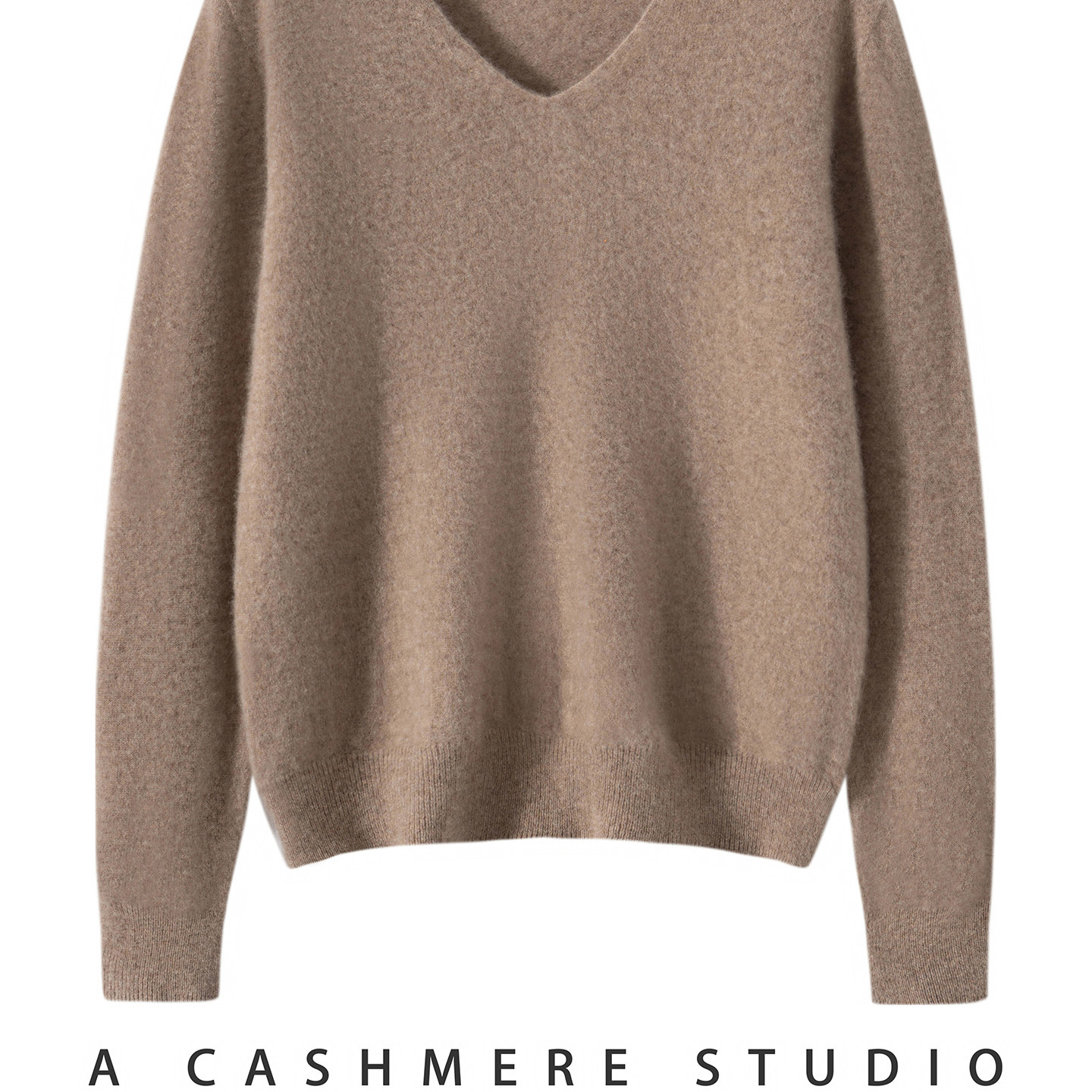 一线成衣羊绒衫女100纯山羊绒毛衣V领套头宽松秋冬针织羊毛衫百搭