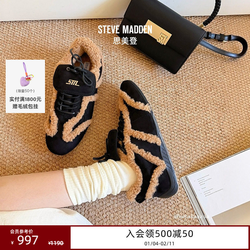 [25冬季新款]厚底Steve Madden思美登BOOMER-F增高加绒毛毛运动鞋