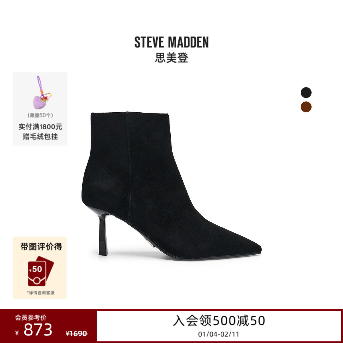 [2025冬季新款]Steve Madden思美登NEXTSTEP绒面瘦瘦靴袜靴短靴女