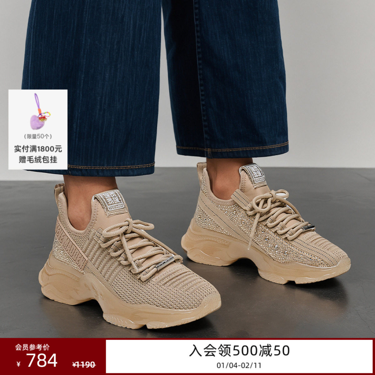 厚底Steve Madden思美登MAXILLA-R-E女网面仿钻运动休闲鞋老爹鞋