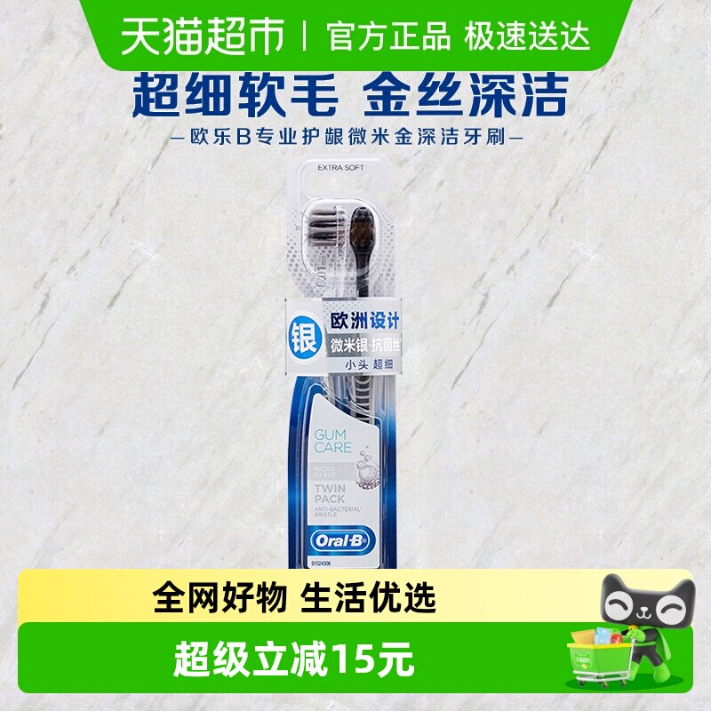 OralB欧乐B成人手动牙刷家庭情侣男士女士宽头牙缝刷超细毛护龈