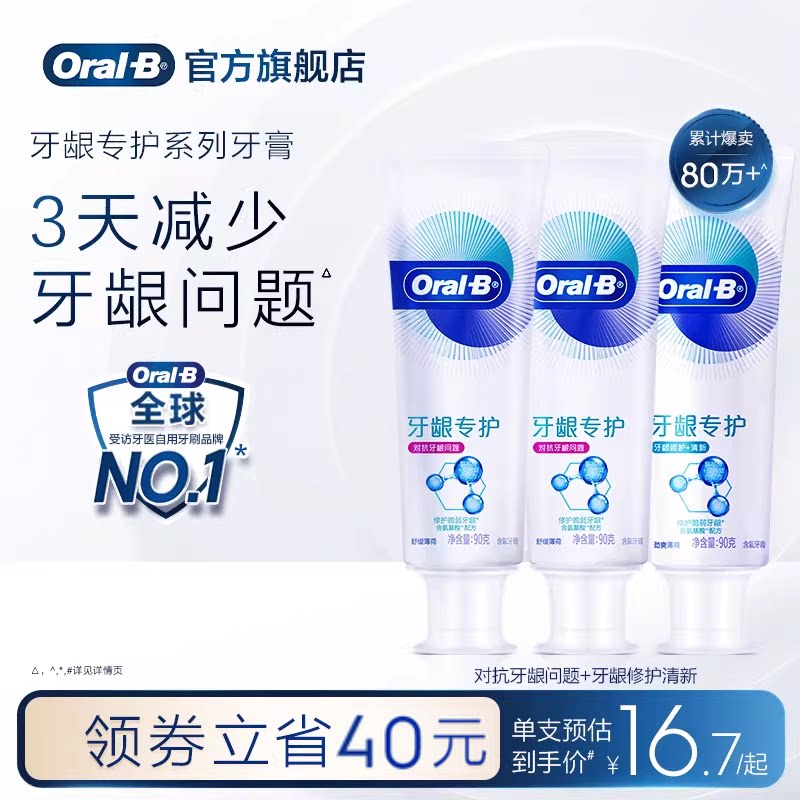 Oralb欧乐B氨基酸牙膏减少牙龈问题清新口气含氟男士女士90g正品