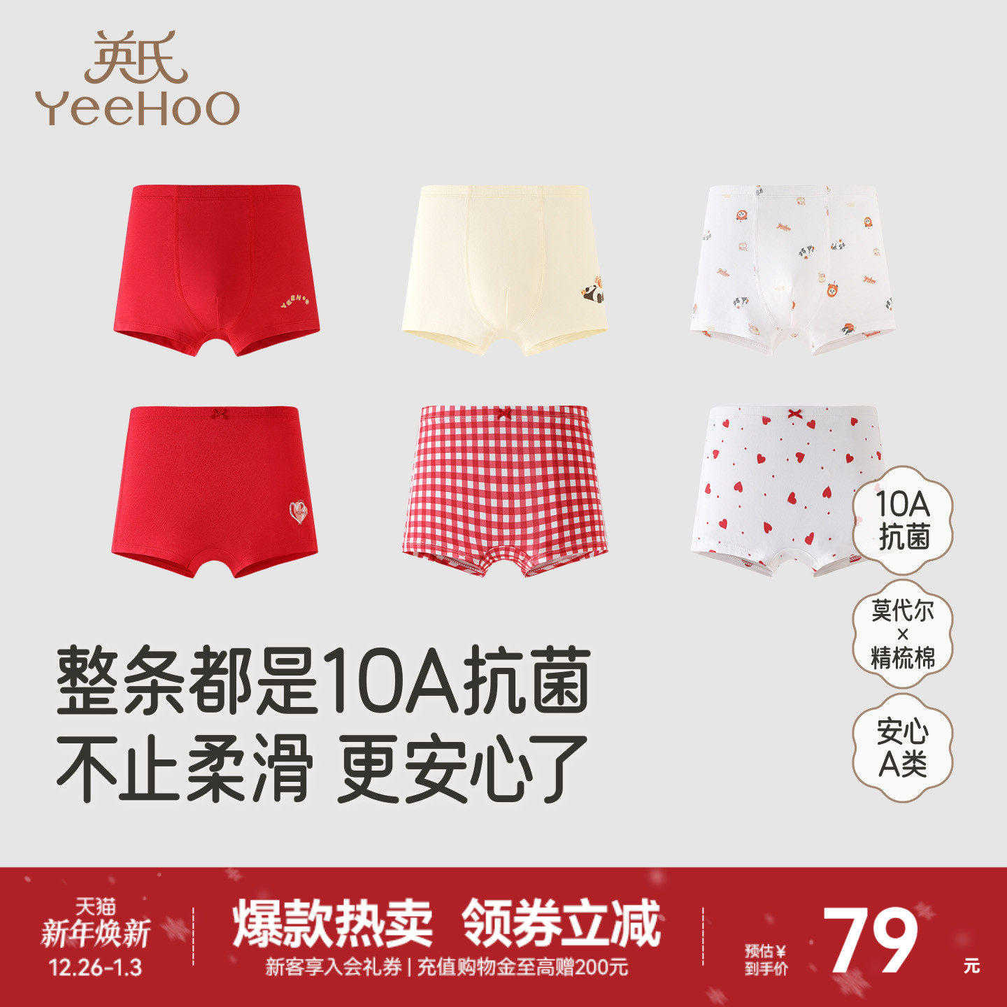 [10A抗菌]英氏儿童内裤男童女童平角裤中大童青少年红色四角底裤