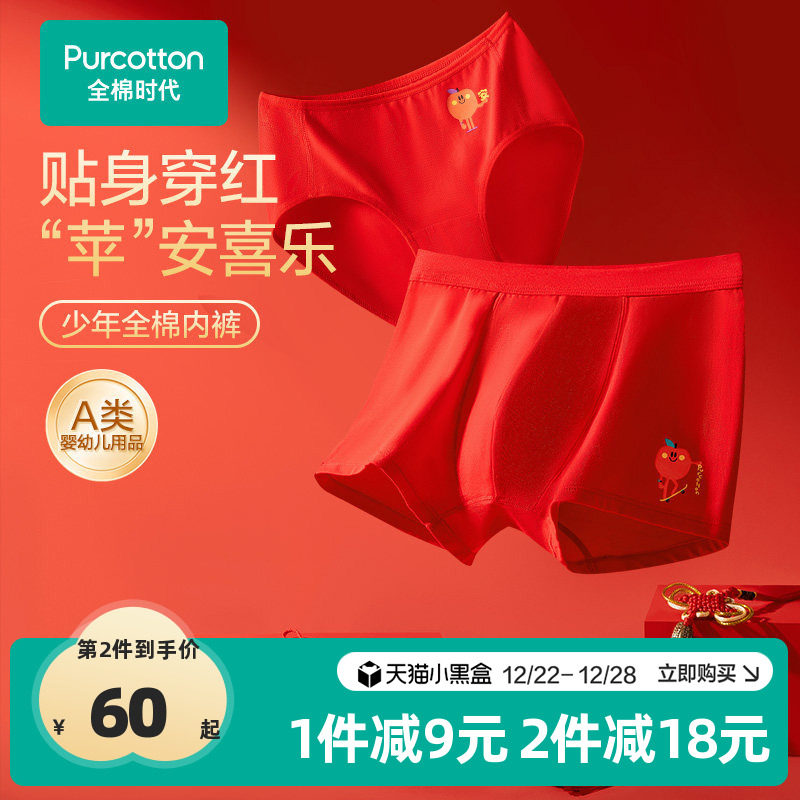 全棉时代青少年2条装全棉红内裤男女红品本命年红色平角三角内裤