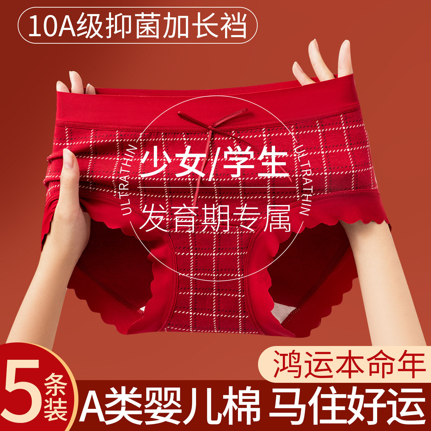 本命年青少年少女孩红色内裤女纯棉抗菌马年初高中学生大童三角裤