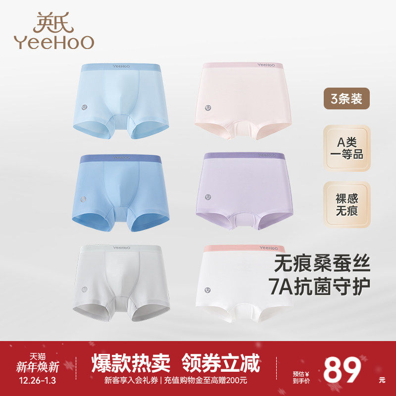 [桑蚕丝]英氏男童内裤青少年女童四角裤儿童平角7a抗菌不夹中大童