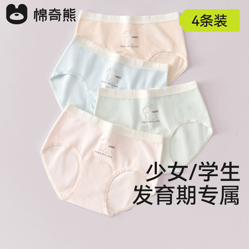 全棉时代女童内裤纯棉中腰透气学生可爱青少年高中生少女内裤 2条