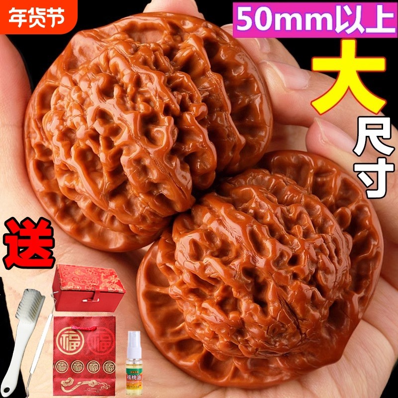 文玩核桃大尺手玩50mm麒麟纹王勇官帽核桃男士盘玩手把件核桃把玩