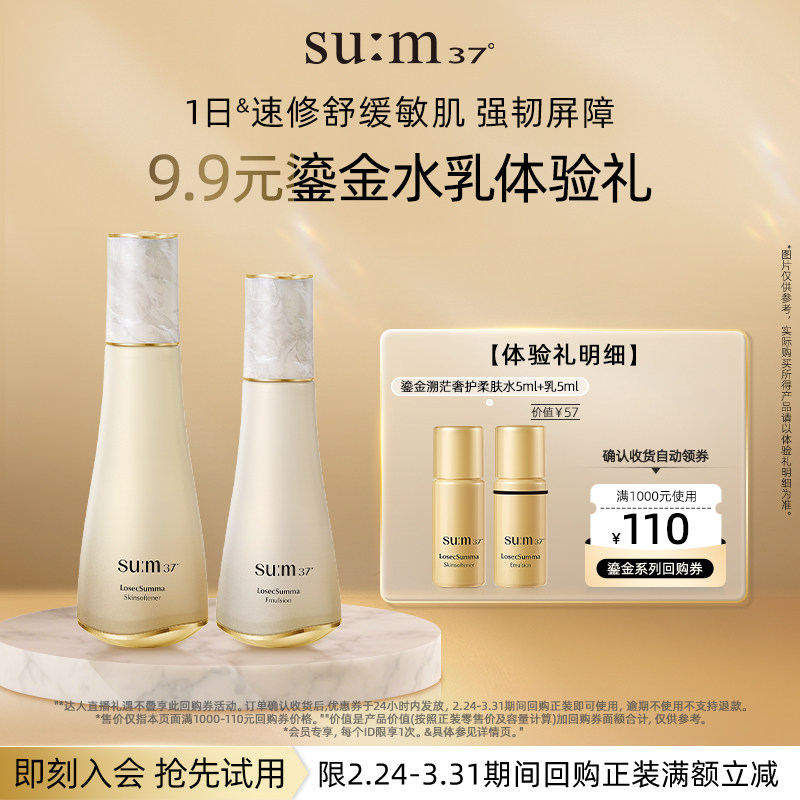 韩国sum37°苏秘鎏金溯茫套装水乳套盒呼吸罗马鱼子酱苏马护肤品