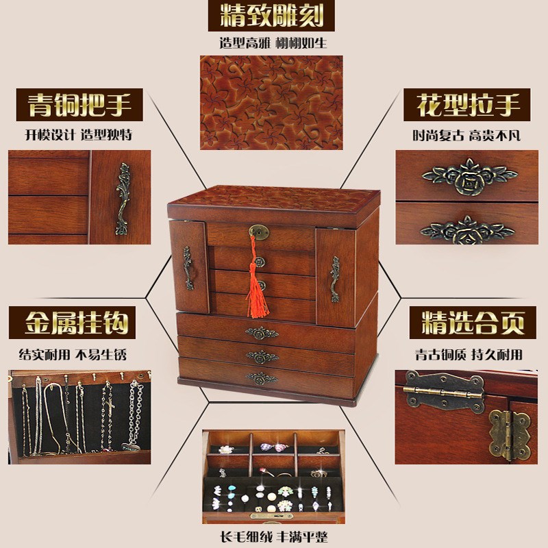 中式复古实木首饰盒木质首饰收纳盒多层大容量欧式公主饰品盒礼物