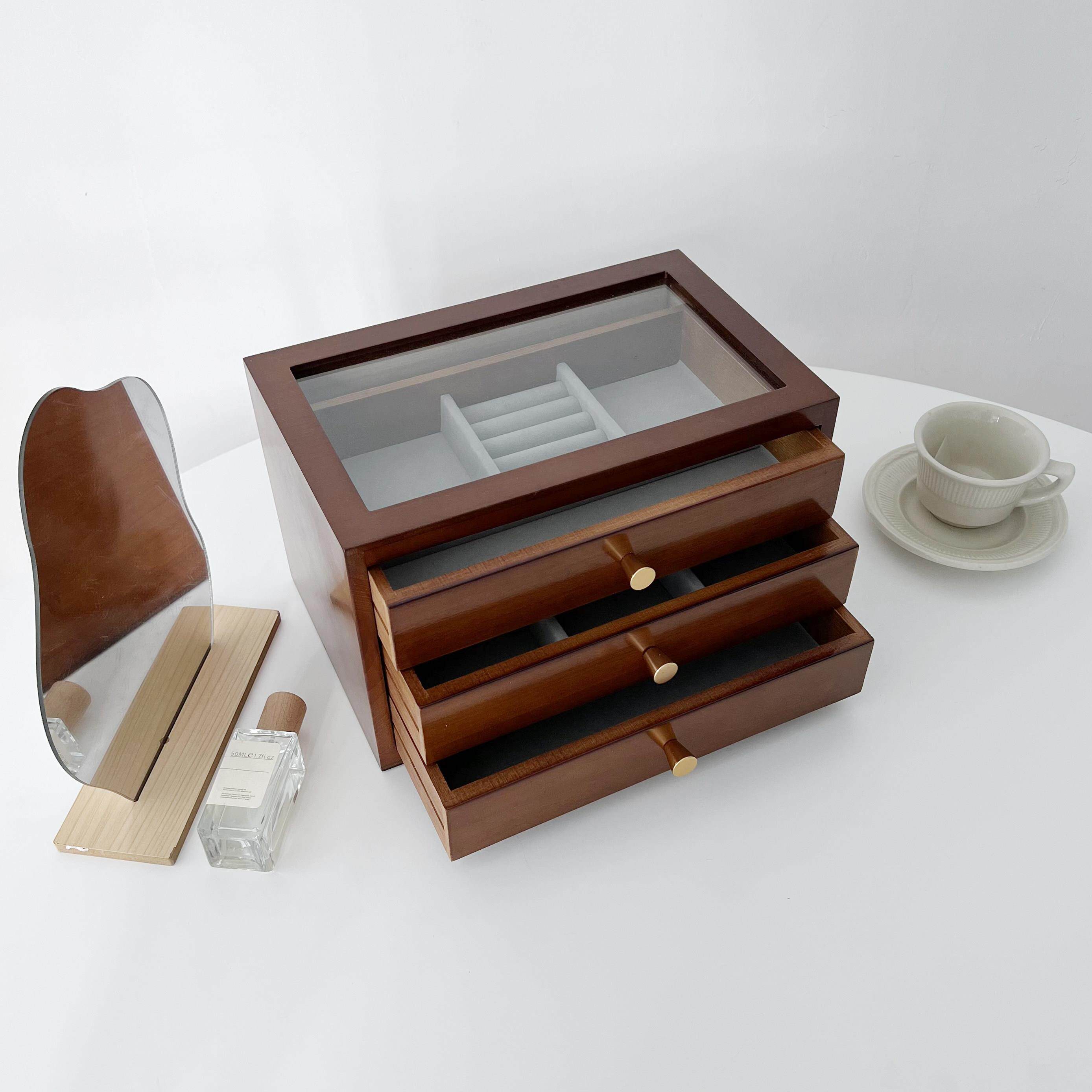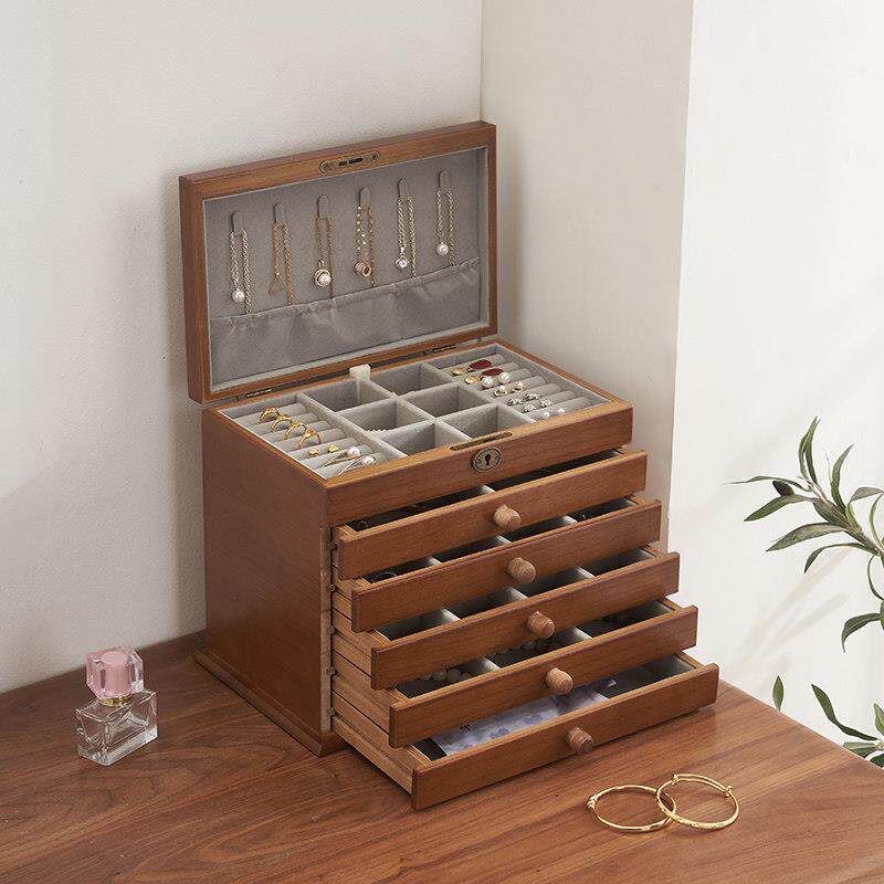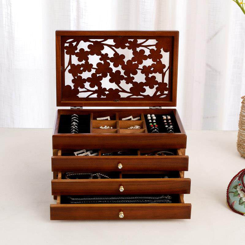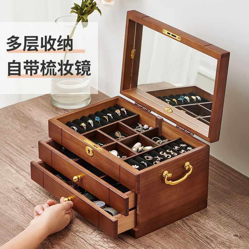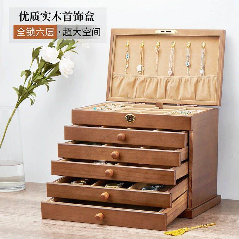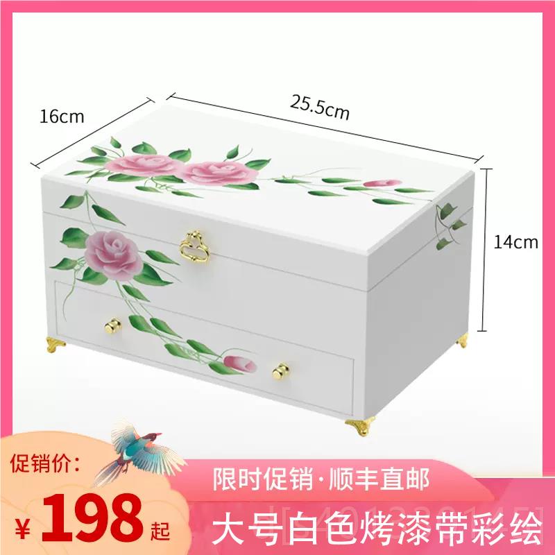 日式木质首饰盒实木公主欧式抽屉式手饰品珠宝收纳盒家用结婚礼物