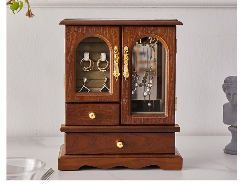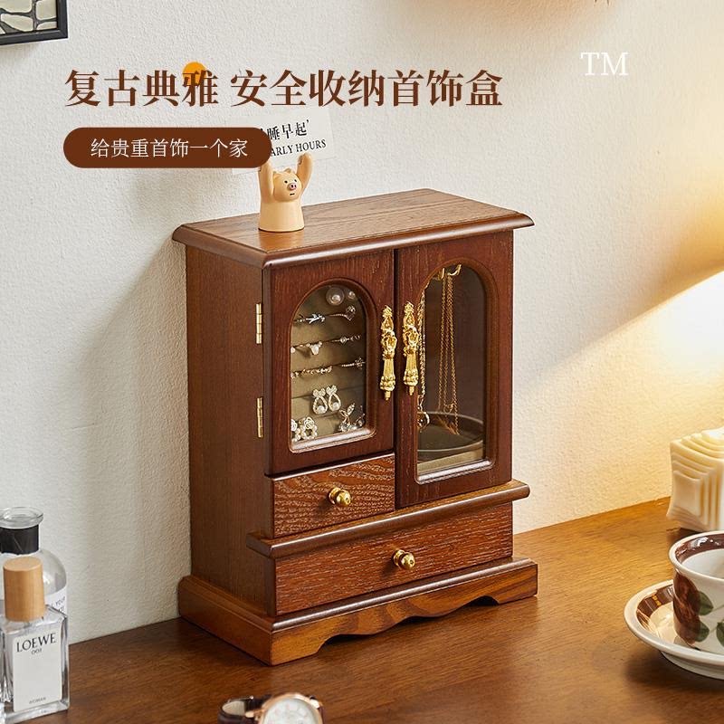 实木欧式公主耳钉首饰盒木质复古风耳环项链卧室饰品盒戒指收纳盒