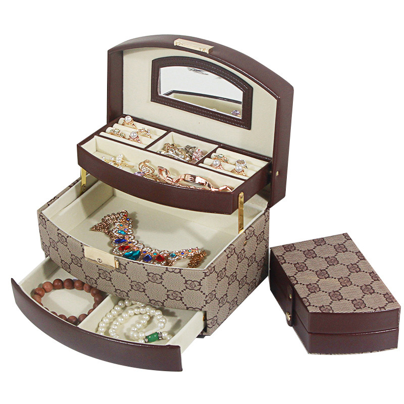 皮质高档欧式多层家居实木带锁首饰盒饰品盒礼品项链收纳盒首饰包