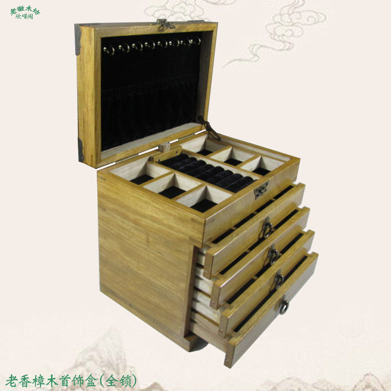 香樟木首饰盒带锁欧式高档实木多层公主抽屉式韩国大W号饰品收纳