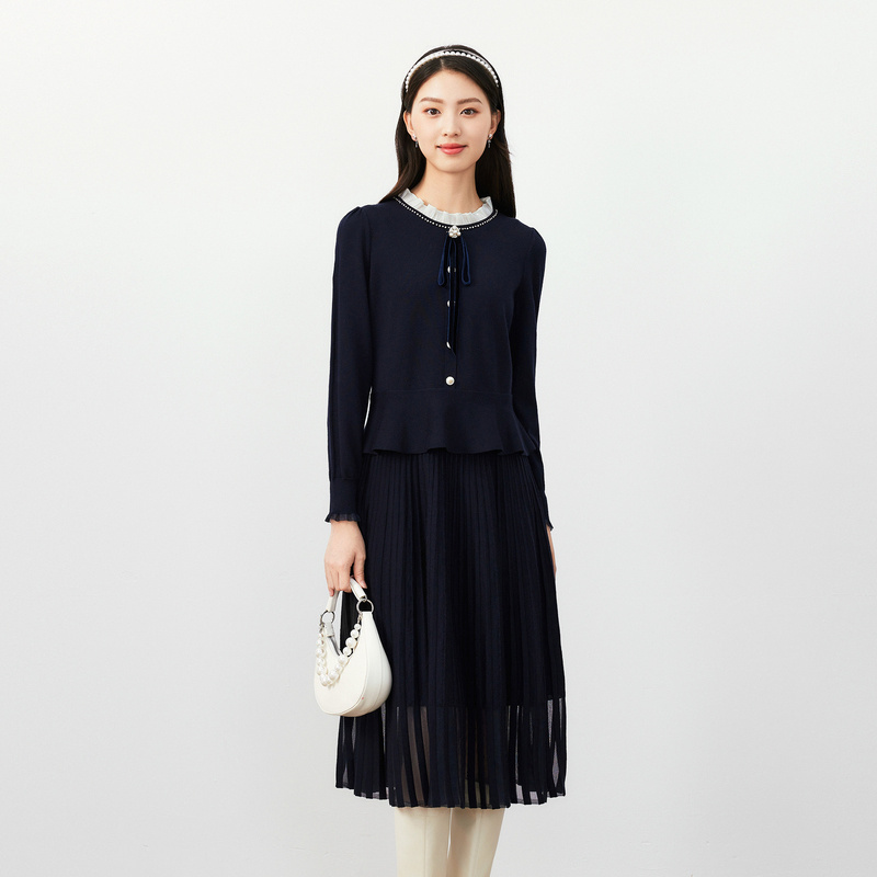 - 秋冬长袖中长款连衣裙两件套