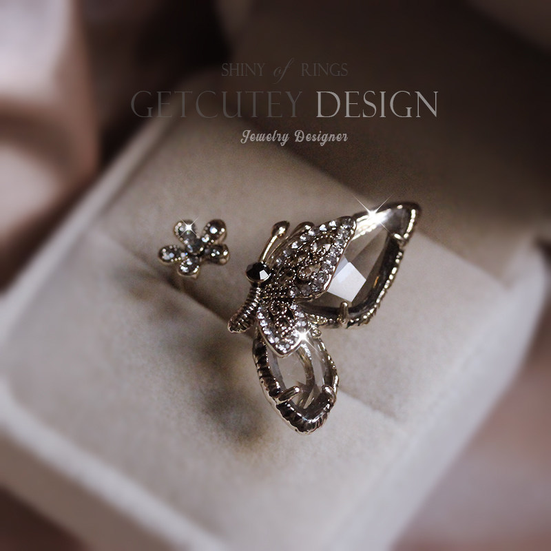 GETCUTEY超拉风开口合成水晶蝴蝶食指戒指女百搭时尚指环日韩潮人