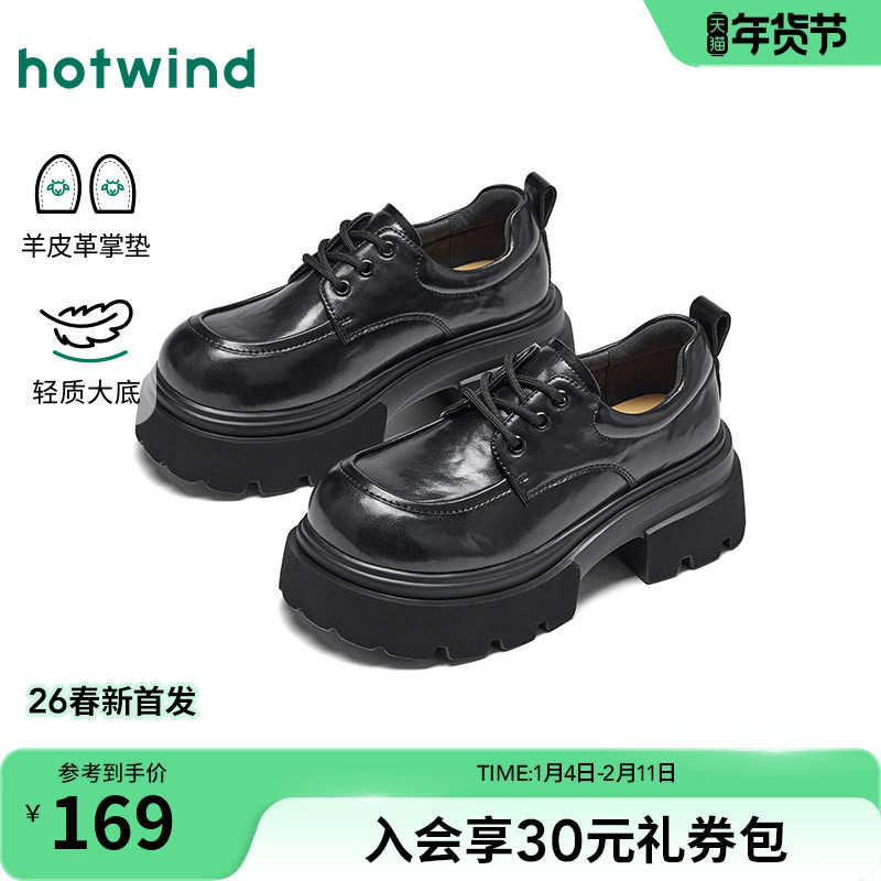 热风粗跟单鞋女鞋2026年春季新款英伦鞋子通勤小皮鞋H02W26111