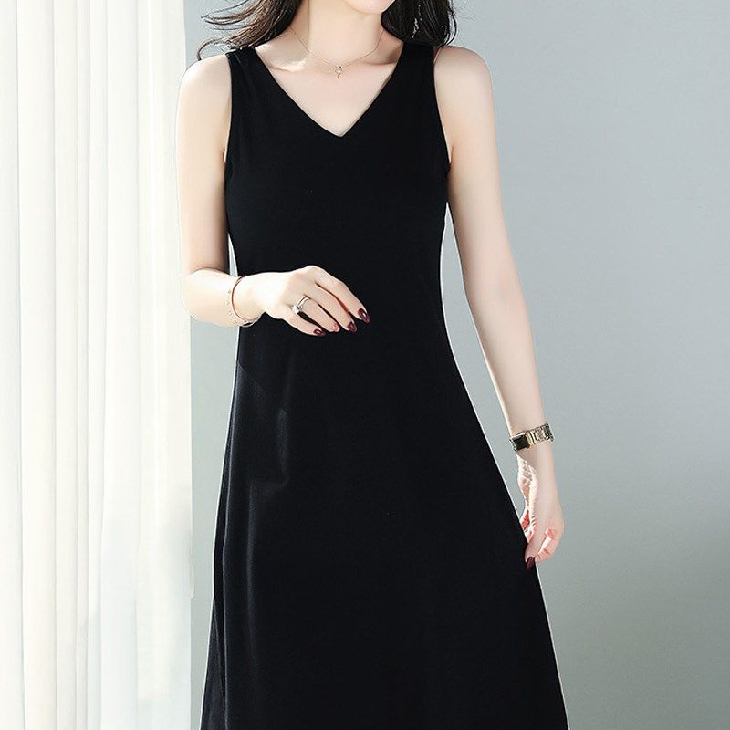 2025年春季新款黑色打底连衣裙内搭吊带直筒背心无袖裙子女外穿
