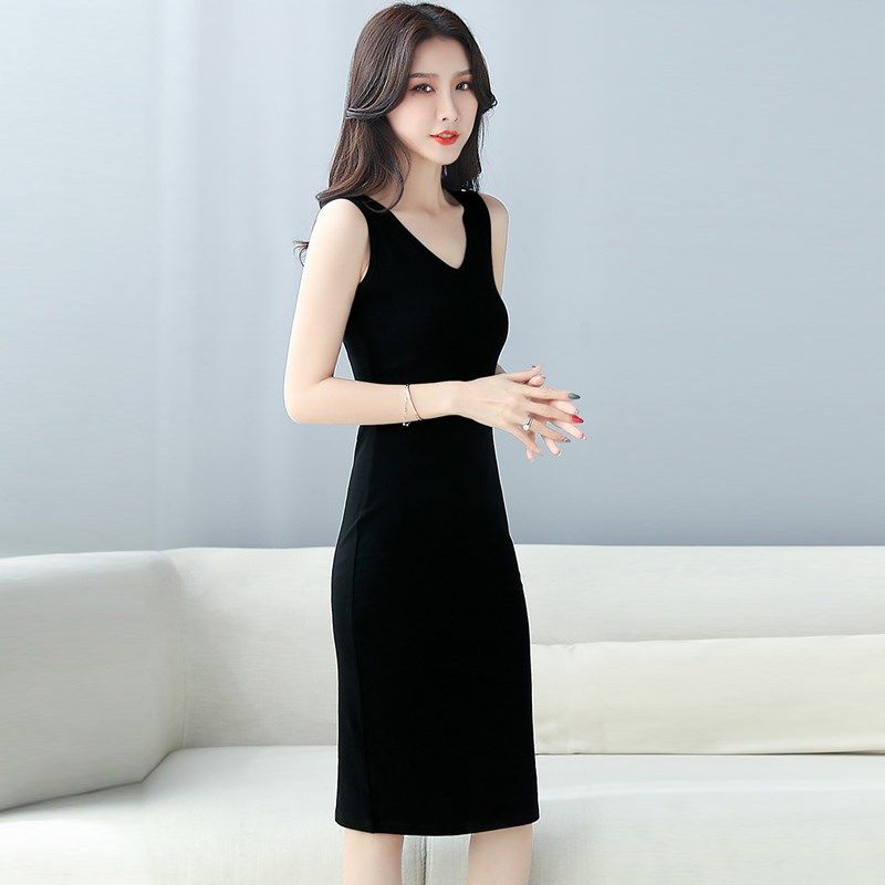 黑色打底连衣裙小黑裙吊带背心长裙女夏修身显瘦无袖裙子2020新款