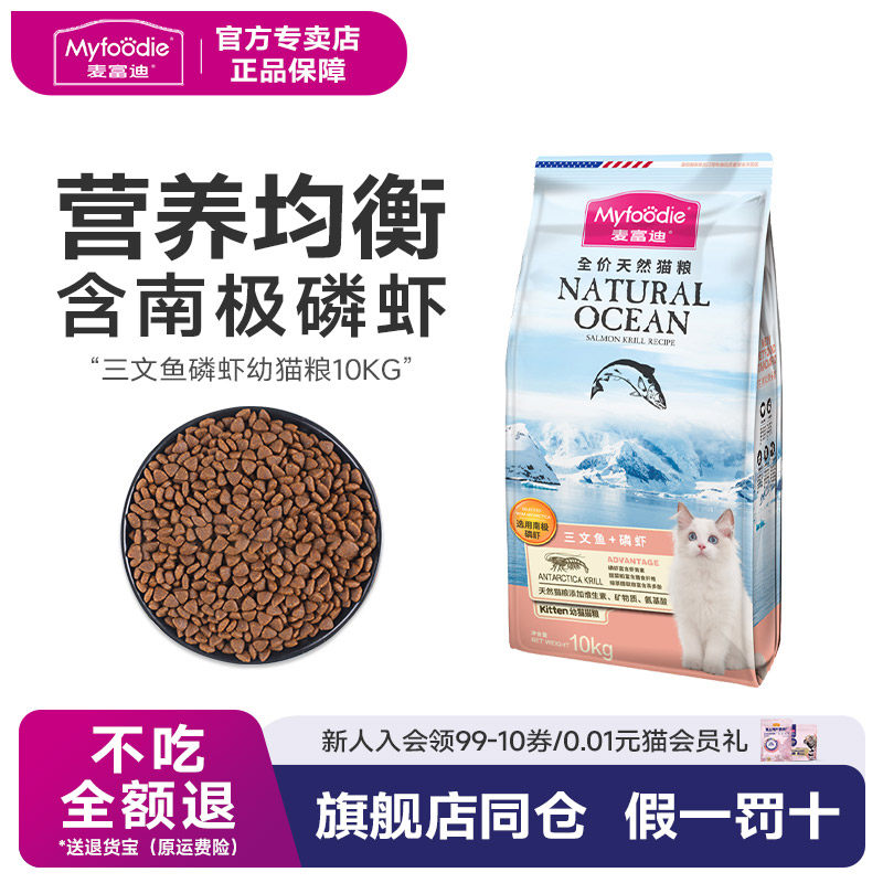 麦富迪幼猫猫粮10kg三文鱼油天然幼猫粮英短促排毛球包邮磷虾