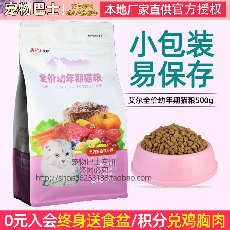 艾尔孕猫幼猫猫粮粮500g独立包装猫主粮猫零食全国包邮 4包送1包