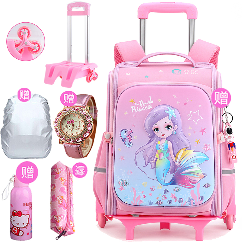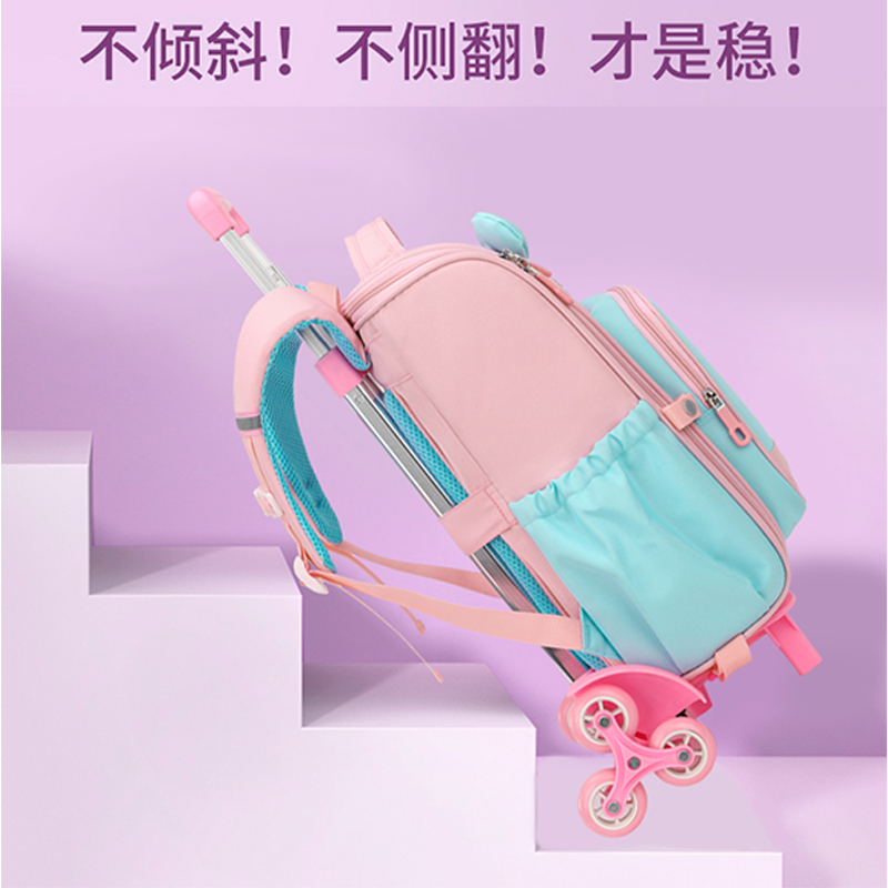 拉杆书包女小学生1-3-6年级y儿童大容量防水可爬楼轻静音轮拉杆箱