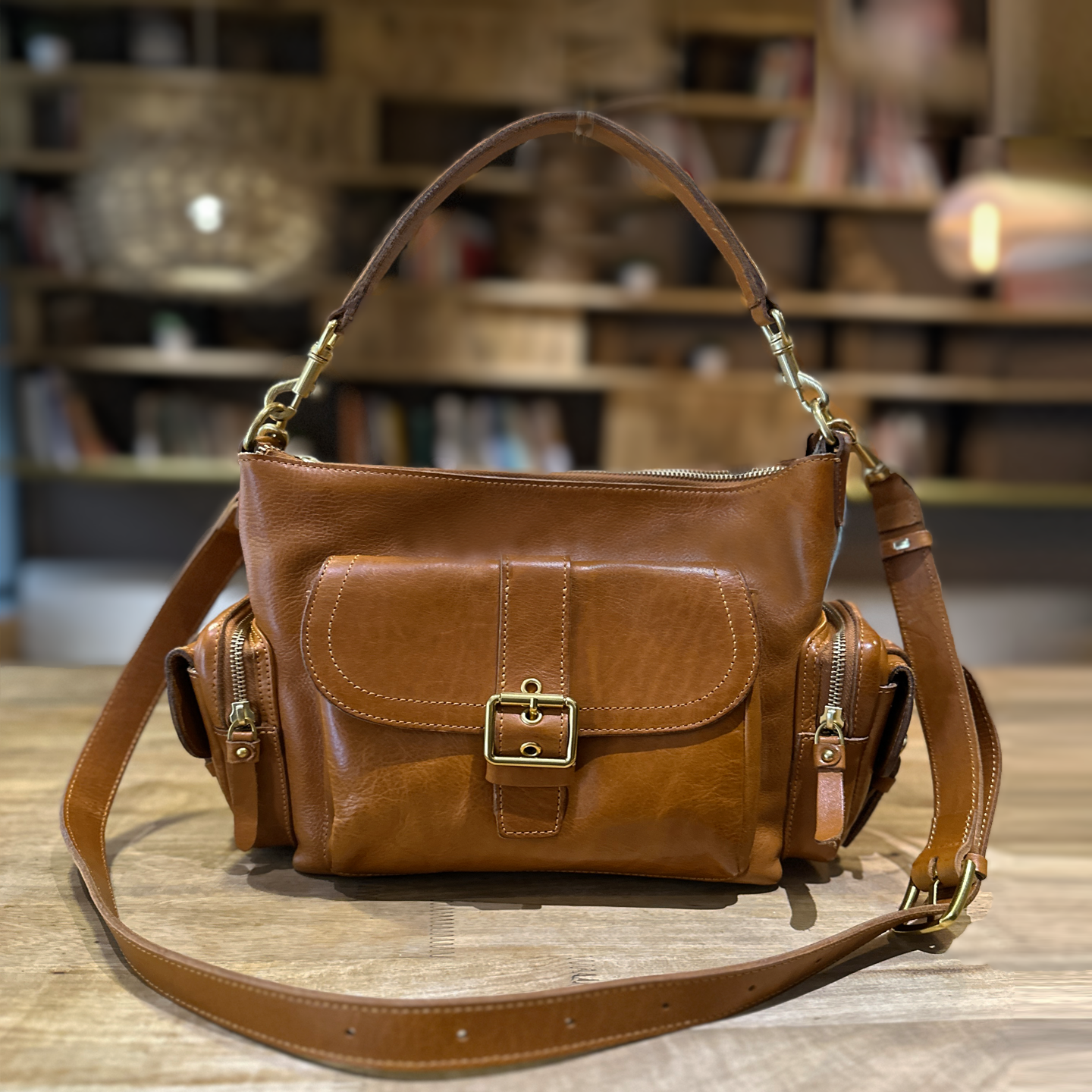 明星同款2025机车包意大利进口重工洗水植鞣皮中号黑色斜挎相机包