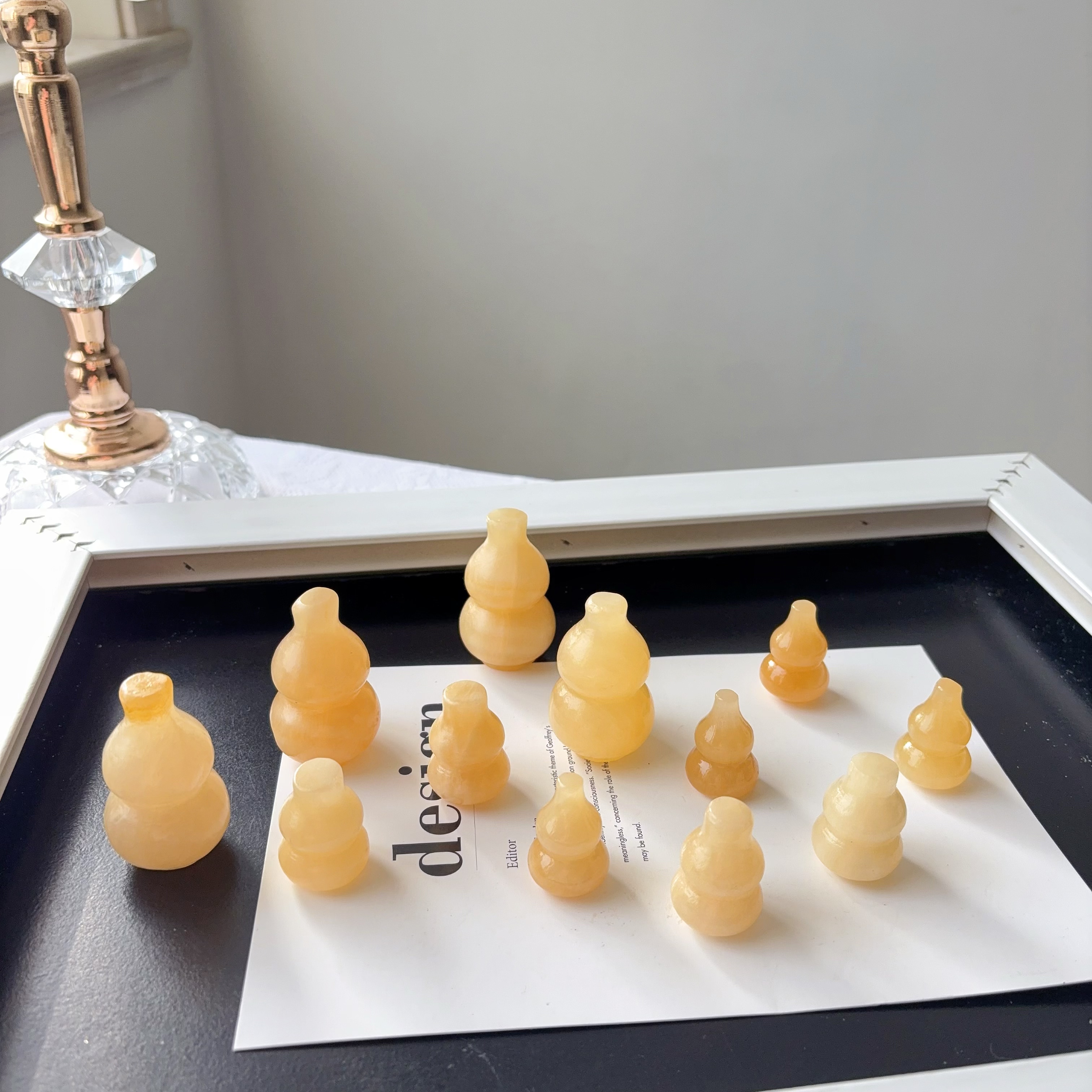 天然水晶石米黄玉摆件装饰聚宝盆福禄原石打磨雕刻葫芦送礼物招米