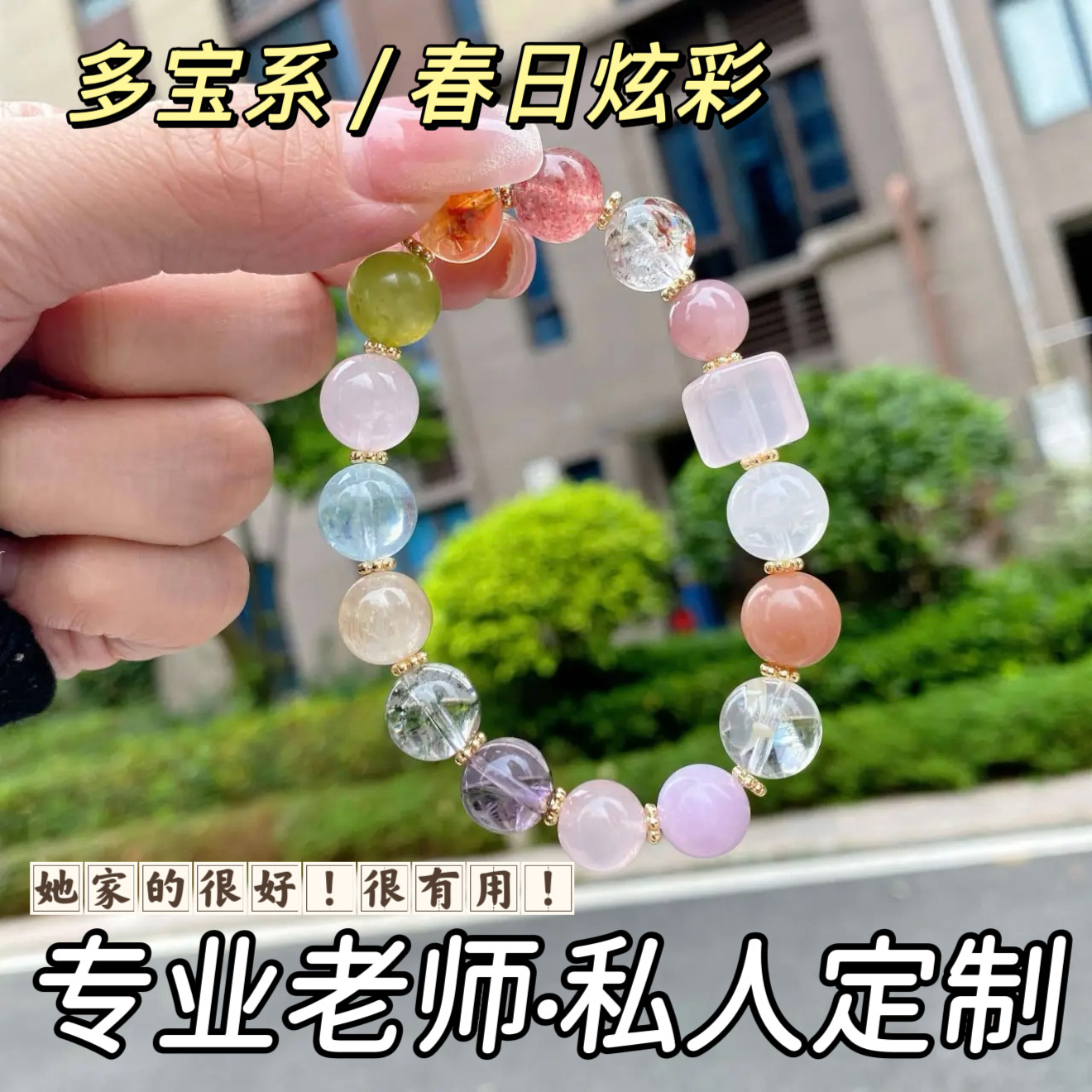 天然水晶手串女多宝手链粉水晶黄水晶石海蓝宝送闺蜜原创新年礼物