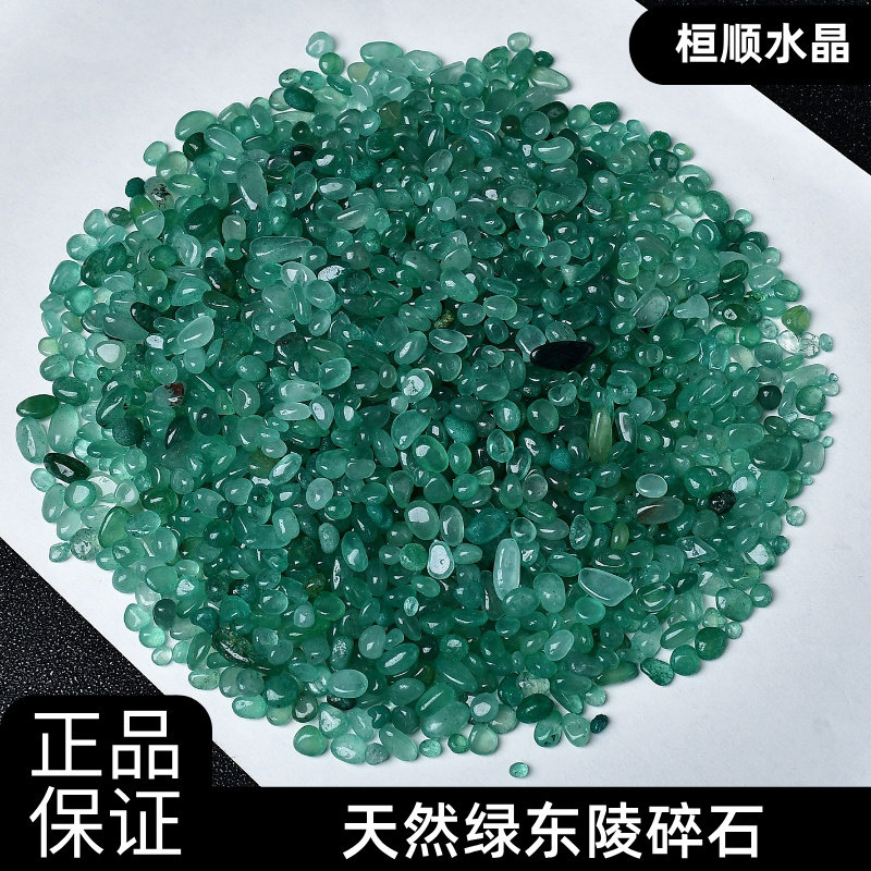 天然东陵玉碎石绿色石头摆件边角玉石碎料绿色水晶石头东陵玉原石