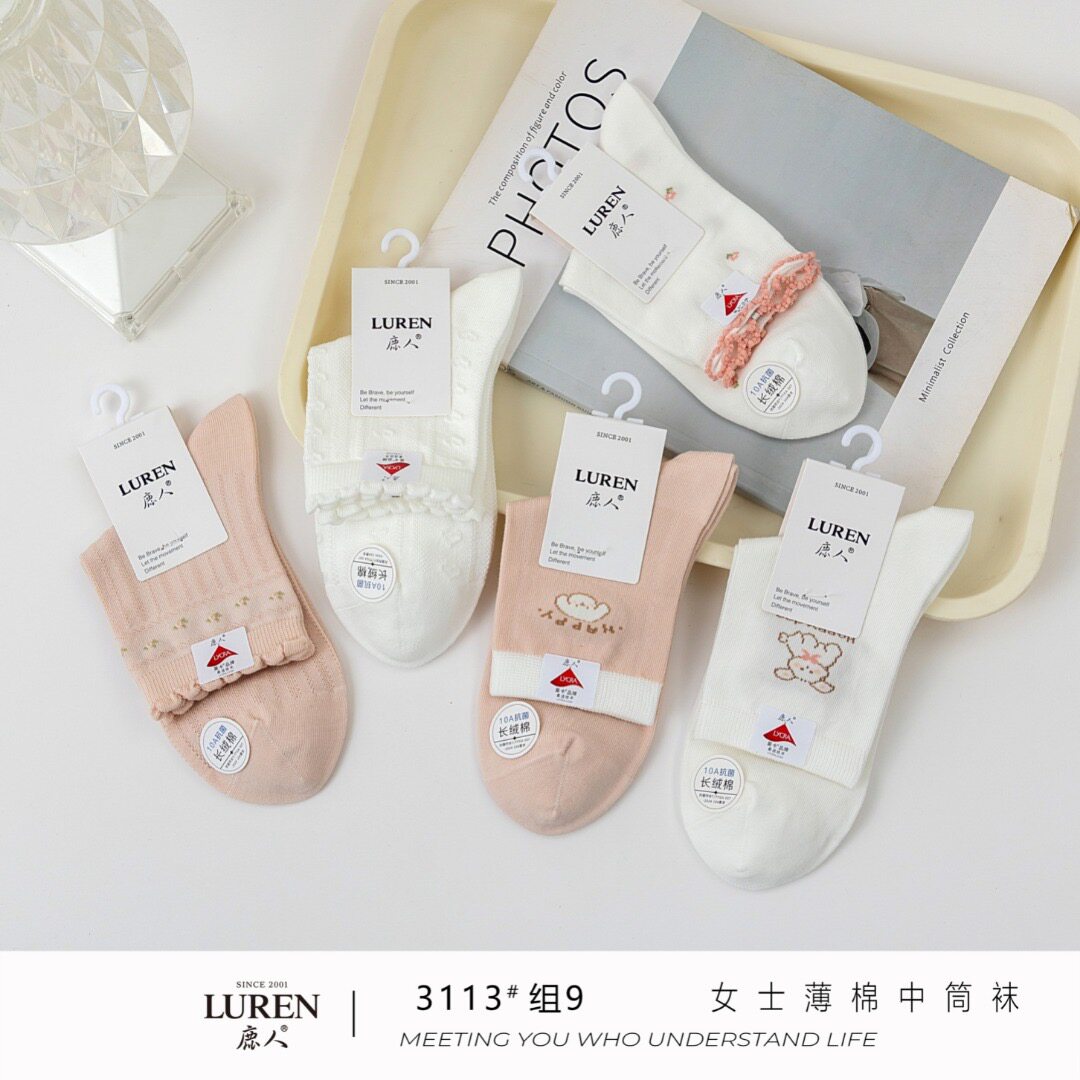 鹿人袜子四季女袜春秋薄棉无骨中筒袜柔软透气抑菌休闲百搭袜3012