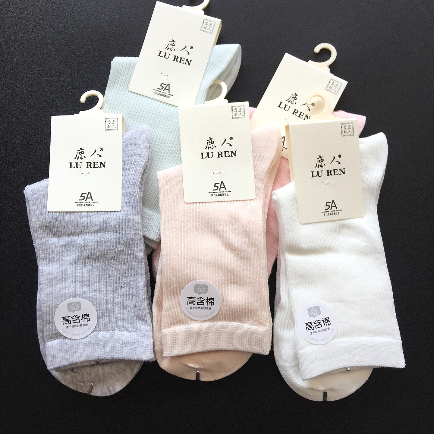 鹿人袜子女士纯棉春秋季吸汗薄款糖果色中筒袜全棉长袜子女6159