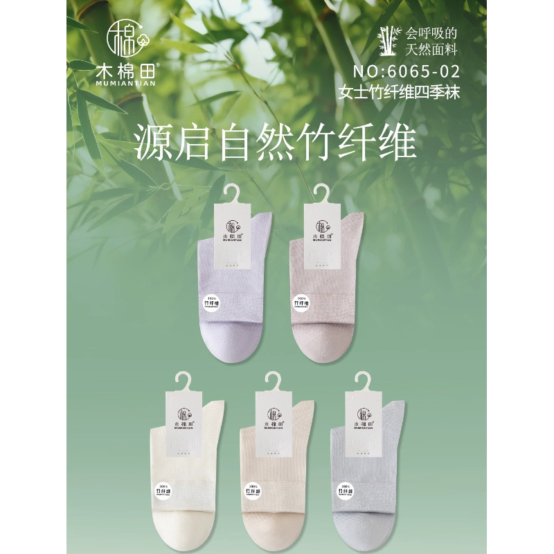 竹纤维女袜中高筒纯色男女竹炭袜春秋舒适柔软无缝除臭木棉田6065