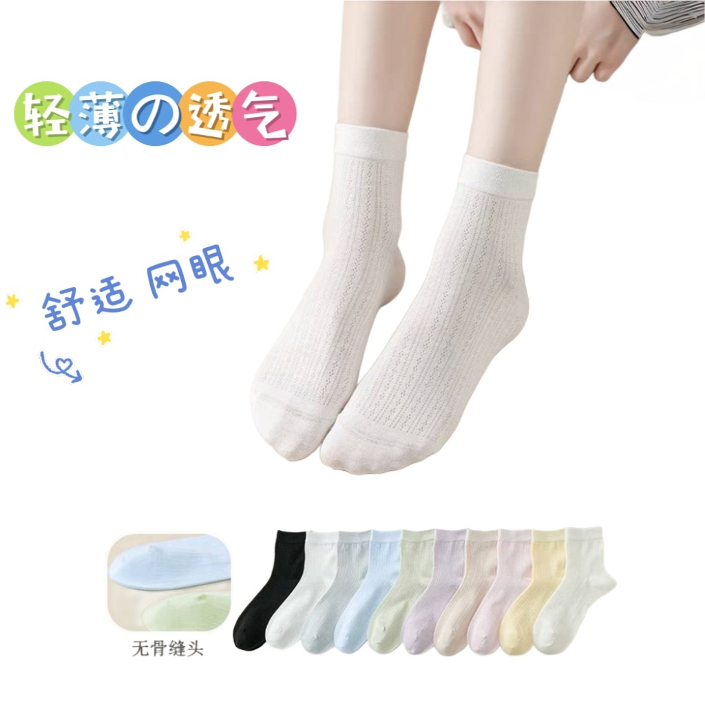 女士袜子春夏纯棉薄款网眼女中腰袜吸汗抗菌无骨学生素色袜子3128