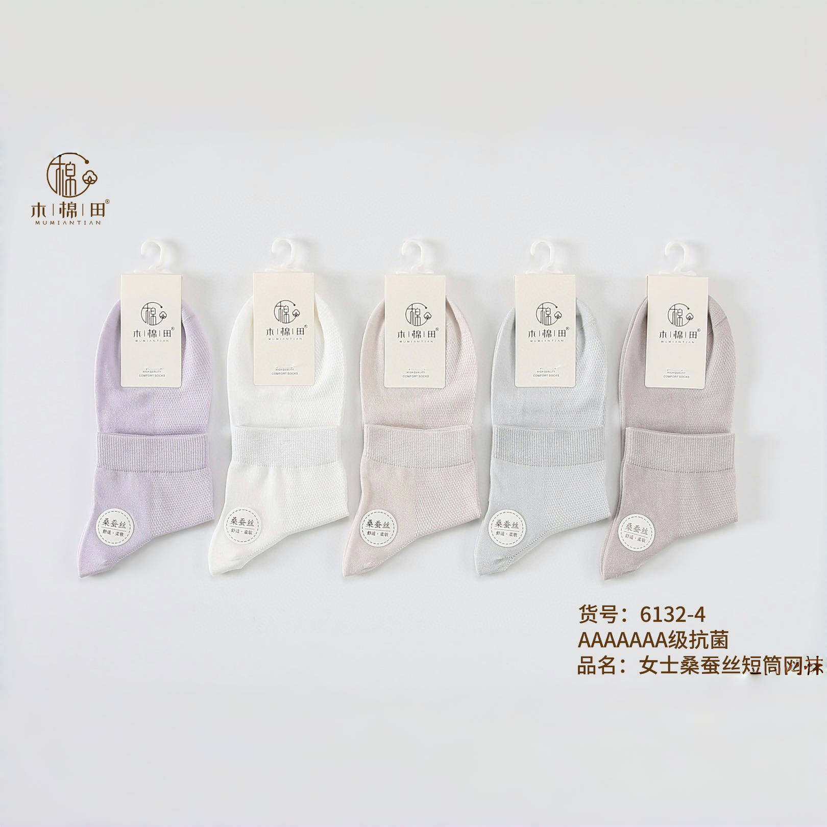 木棉田女袜夏季桑蚕丝超薄网眼中短筒袜子无骨透气舒适防臭袜6106
