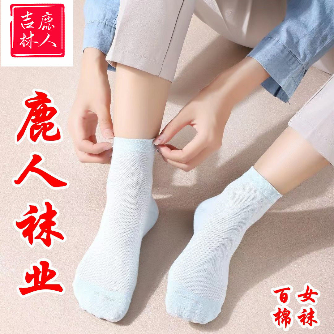 鹿人女士春夏季薄款中筒棉袜网眼透气不臭脚短袜女袜松口无骨袜子