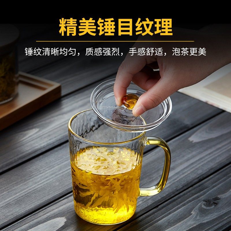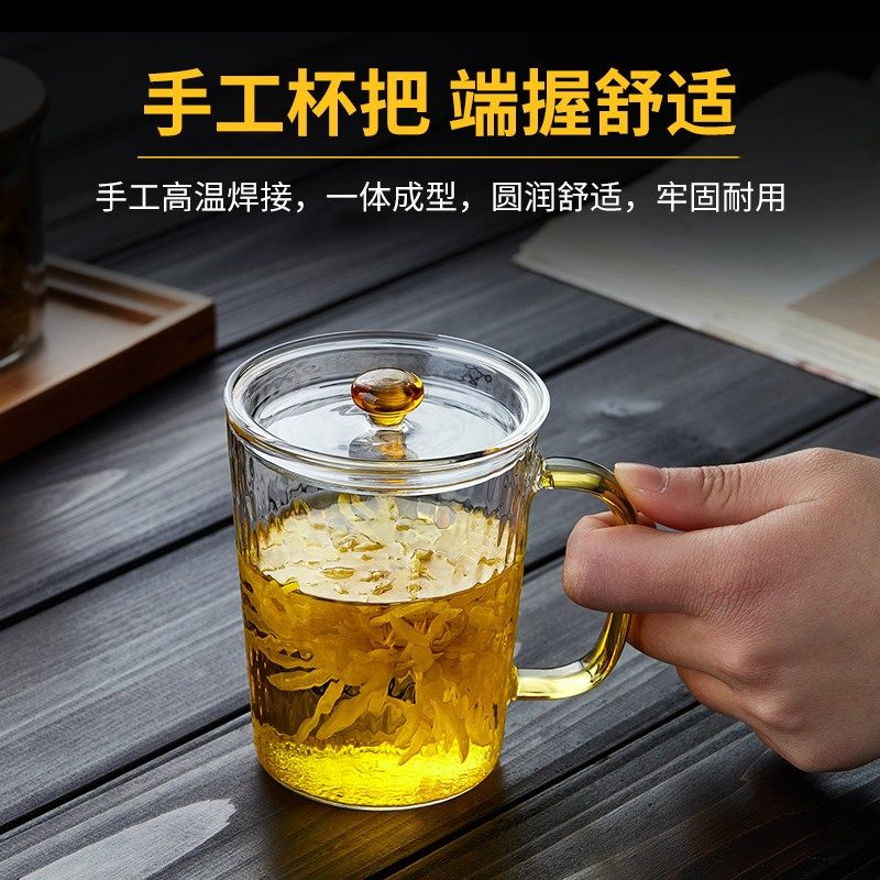 加厚耐热玻璃杯水杯子办公室女带盖花茶杯带把过滤茶水分离泡茶杯