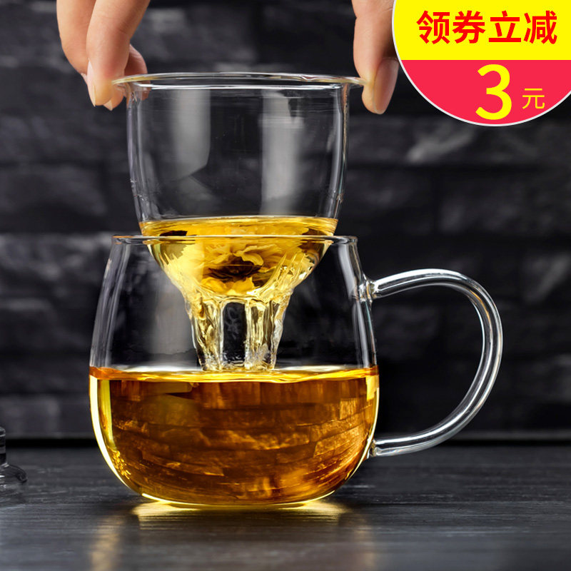 玻璃杯过滤带把喝花茶茶杯家用加厚水杯男女办公室茶水分离泡茶杯