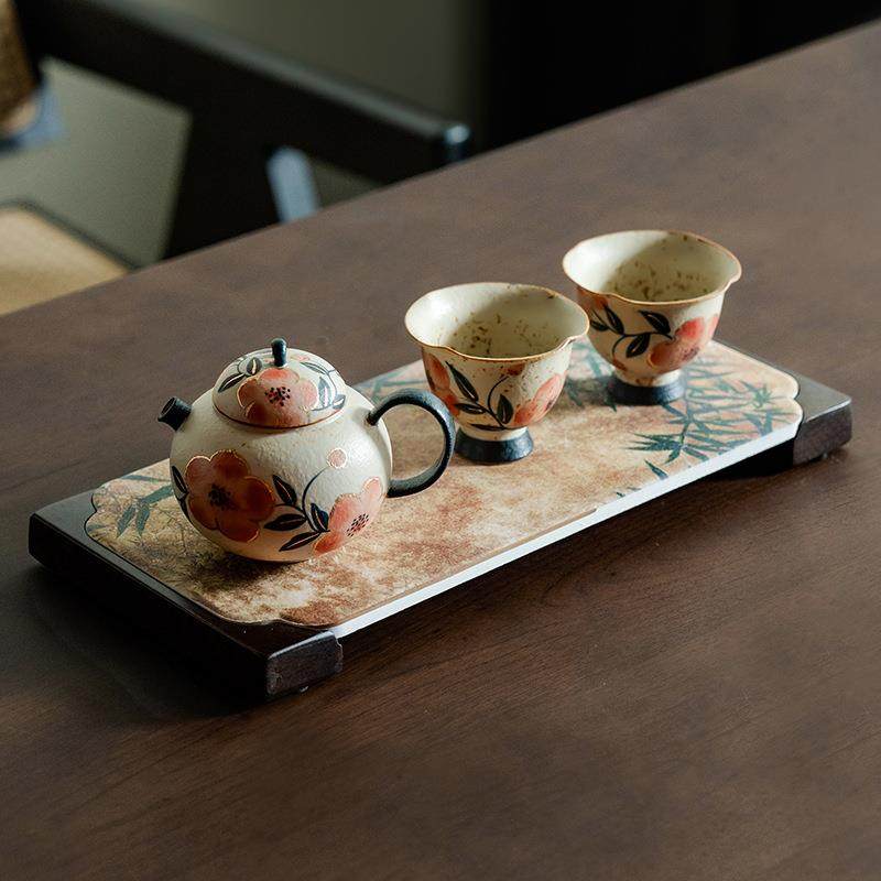 手纯绘桃花茶茶杯陶瓷一壶壶二杯带茶用盘家中ZH-3899式功夫茶具
