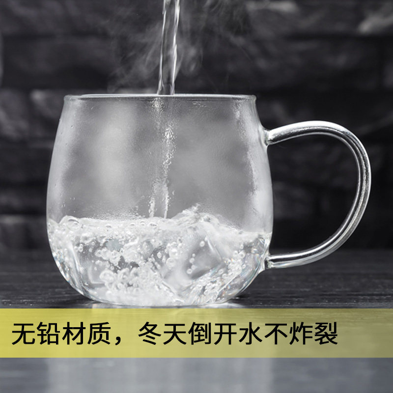物生物玻璃杯家用茶水分离泡茶杯子水杯男带把手带盖花茶杯女茶具