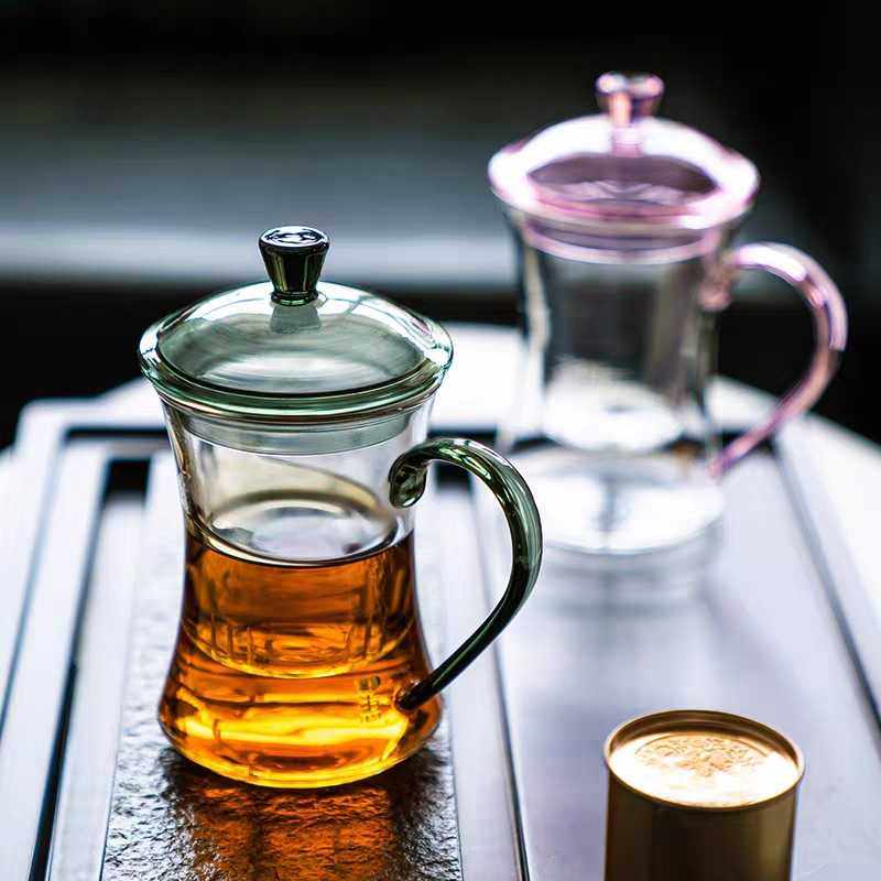 Glasslock盖朗玻璃水杯花茶杯家用茶水分离办公室过滤泡茶带把手