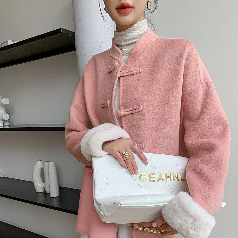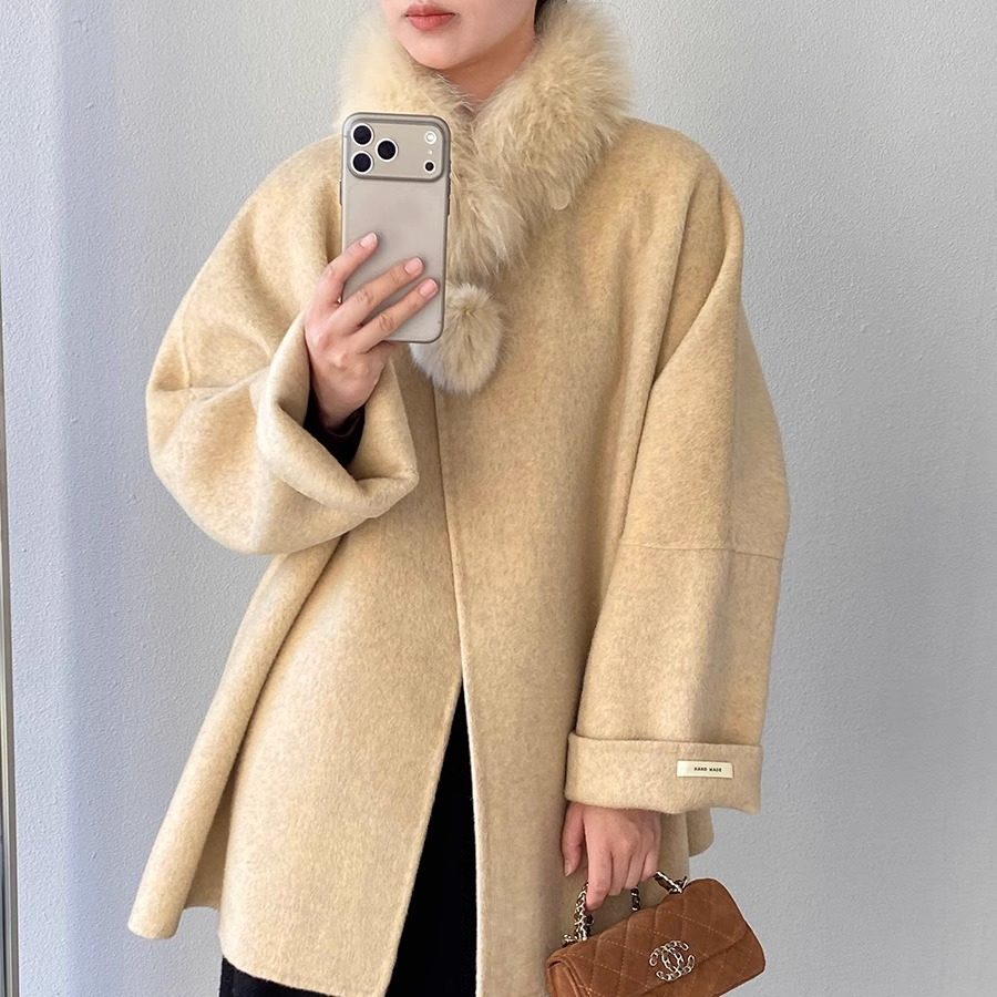 2025冬新款外套韩版设计中短款双面羊驼毛高贵大衣毛毛外套女大衣